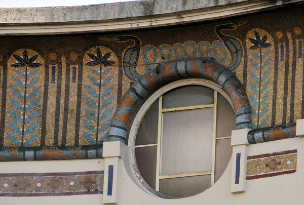 Змеи и уреусы могут встретиться в виде декоративных элементов на фасадах. Уреус — священная кобра, символ царской защиты и солнечной энергии.