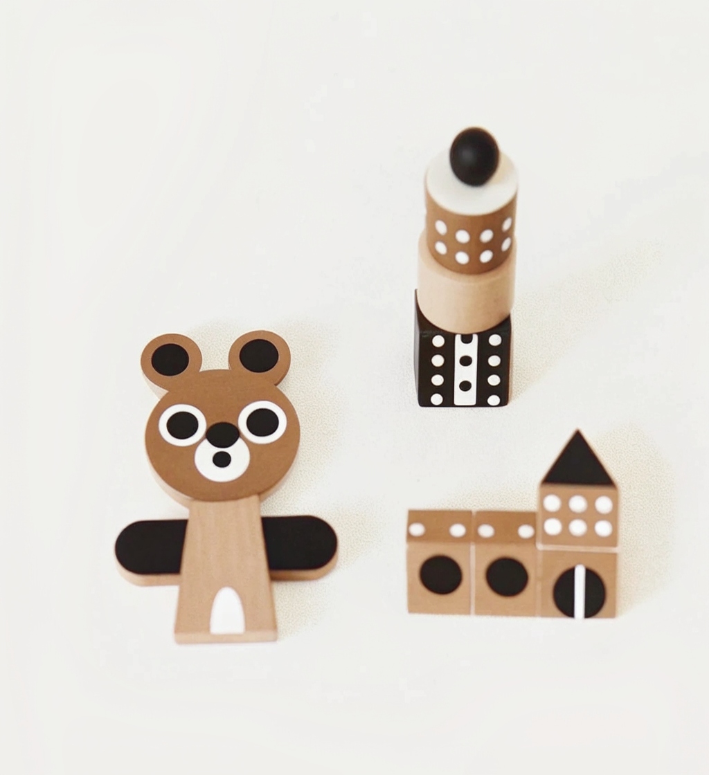 Были так же созданы деревянные развивающие игрушки, на основе маскотов бренда