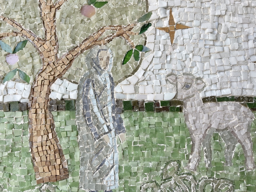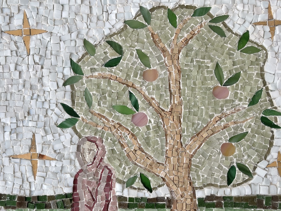 В рамках производственной практики была выполнена серия из трёх мозаик под названием «Райский сад», посвящённая месту, где царят спокойствие и умиротворение. Вдохновением для работы послужило пребывание в Валаамском монастыре, где природа поражает своим величием и простотой. Именно там мне удалось очистить дух от суеты и погрузиться в гармонию окружающего мира.
