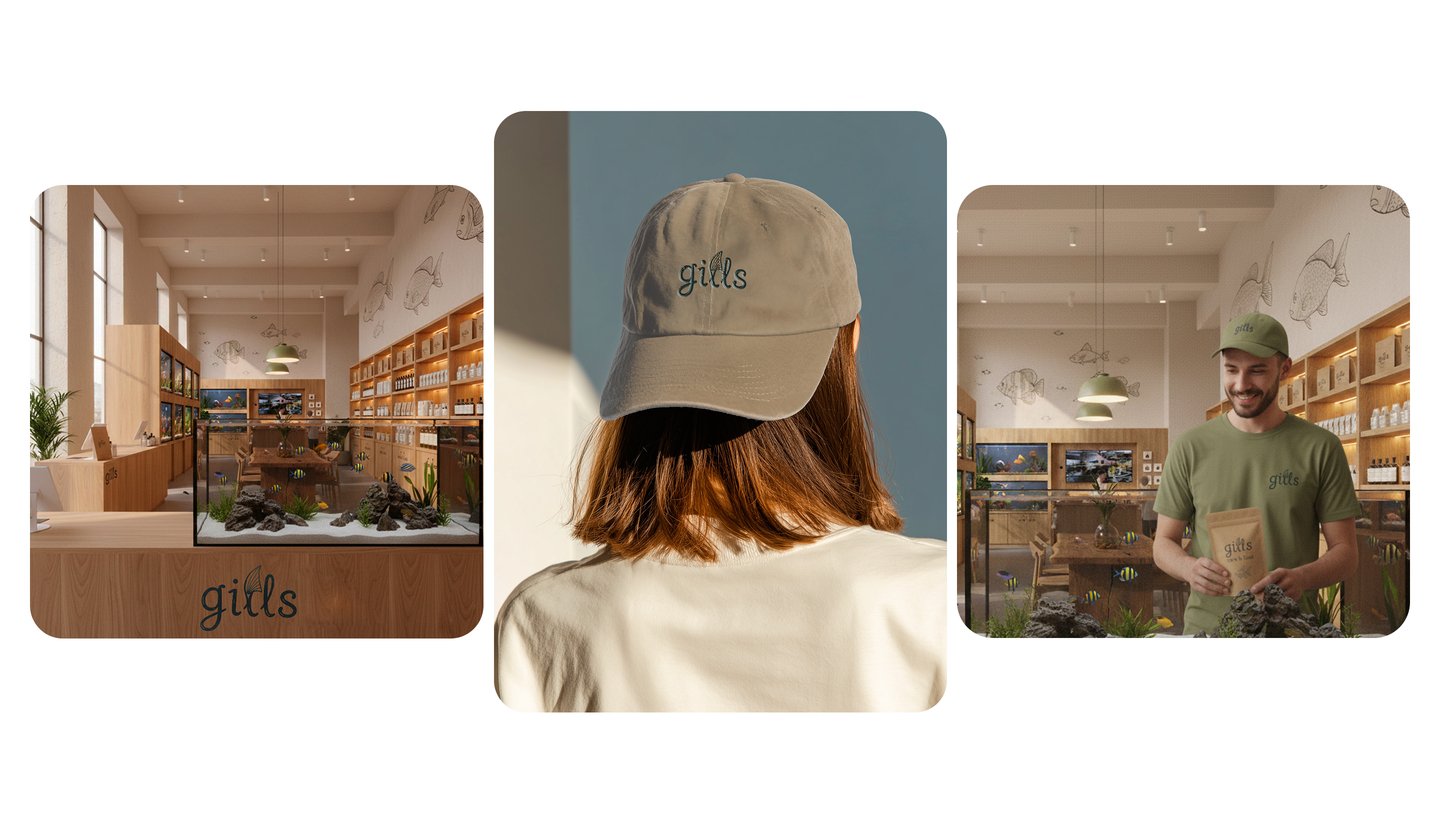Запрос в чат Gpt: Моя задача — полностью создать проект с помощью искусственного интеллекта. Мне нужно сгенерировать все визуальные материалы: логотип, три плаката, интерьер и входную группу магазина, а также показать упаковки корма для рыб, чистящих средств и, возможно, другие дополнительные предметы, которые дополнят образ бренда. Я хочу, чтобы в проекте были и примеры оформления социальных сетей, которые мог бы вести магазин. Всё это должно быть выполнено в едином стиле. Далее мне нужно будет сформировать промт для фирменного стиля и отдельные промты для каждого макета, чтобы загрузить их в нейросеть Gemini от Google и получить изображения, которые будут гармонично сочетаться между собой и создавать целостный визуальный образ проекта.