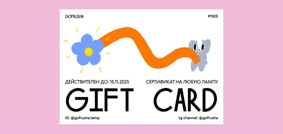 Изначально айдентика Гофруши была сделана для самого первого предмета — люстры из 5-ти труб. При создании визуального языка, мы опирались на яркие цвета, 3Д печать и наши излюбленные символы — цветочки.