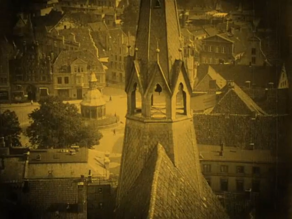 Контраст между идиллическим городом и готическим замком подчёркивает зловещую природу графа Орлока. Архитектура его особняка (стрельчатые арки, пустые пространства) создаёт сюрреалистическую атмосферу и предвещает трудные времена. На контрасте с обычным городом тёмный особняк словно является отображением своего владельца, искажённый ракурсами и деформированной перспективой.