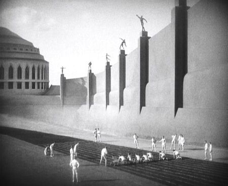 Фриц Ланг в своём фильме «Метрополис» (нем. Metropolis) 1927 года использовал грандиозные декорации и геометрические орнаменты, чтобы показать, как вставшие на сторону зла люди-манипуляторы воплощают в реальный мир весь страх и ужас для угнетения «низших классов».