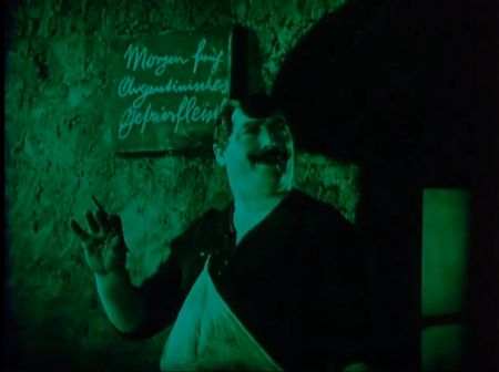 Роберт Вине играет с сознанием зрителя. Так, например, в сцене встречи Фрэнсиса с его другом Аланом и девушкой Джейн городские улицы с помощью авторского видения превращаются в смесь безумного геометрического беспорядка, который не ставит перед собой цель показать зрителю достоверные городские пейзажи, а демонстрирует вымышленный мир главного героя.