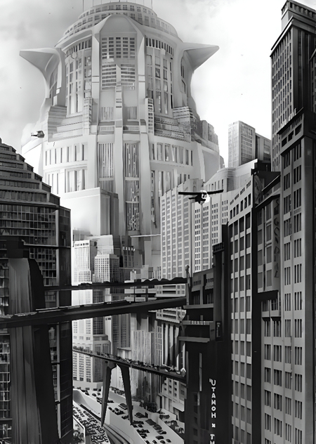 Мир, где город — это лабиринт индустриальных зон, скоростных магистралей и мрачных подворотен, где преступный синдикат, унаследовавший методы безумного гения Мабузе, устанавливает незримый контроль над всеми аспектами жизни обычных людей. Такой сюжет лежит в основе «Завещания доктора Мабу́зе» (нем. Das Testament des Dr. Mabuse) Фрица Ланга (1933). Пока комиссар Ломан расследует сеть преступлений, городское пространство превращается в метафору тоталитарной системы — механизм, в котором тоннели, заводы и улицы служат инструментами большого заговора.