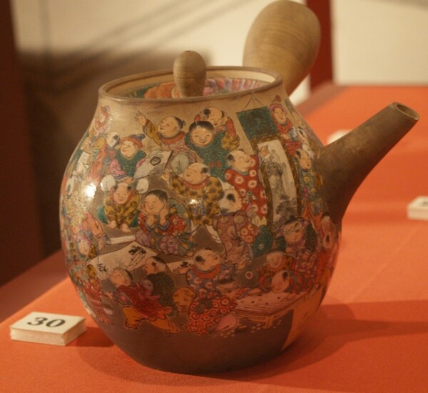 Китайская фарфоровая тарелка 1720 года, на которой изображены дамы, пьющие чай на веранде и собирающиеся играть в игру Го // Керамический чайник, примерно 1800 г, занятие каллиграфией и игры в Го