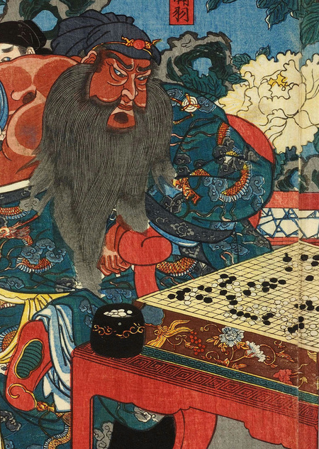 Утагава Кинуёси, Япония, XVIII в. Китайский генерал Гуан Ю играет в Го, чтобы отвлечься от боли в обрабатываемой врачом ране