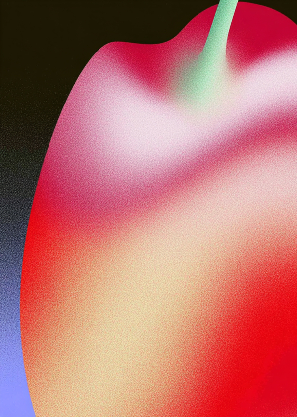 1. Midjourney: 2D-illustration of 2 abstract glossy berries with soft neon gradient lighting, vaporwave aesthetic, soft grain texture, vibrant gradient bg, smooth shading, abstract digital illustration, high contrast, front view.