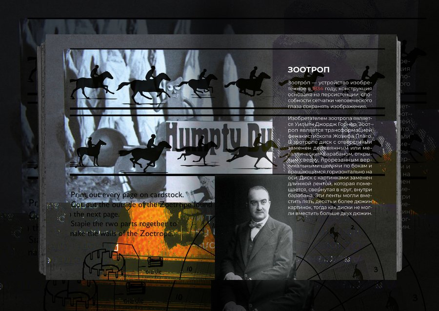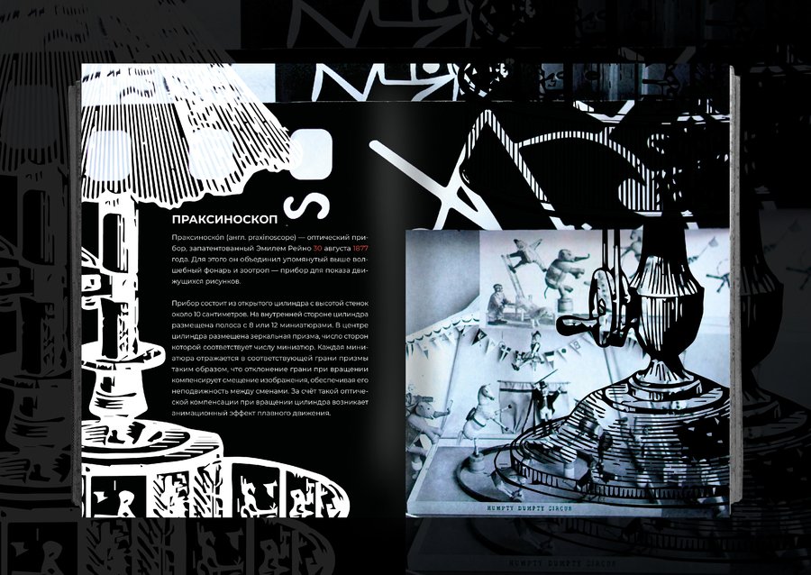 Зин раскрывает ключевые стадии развития механик, связанные с выстраиваем иллюзии движения. Проследим развитие анимации от появления первых проекторов XVII века до появления и развития полноценной компьютерной анимации сегодняшних дней.