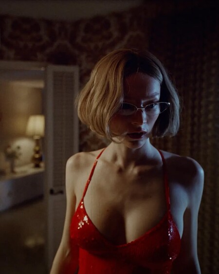 Хантер Шаффер в рамках кампании воплощает образ героини культовых хорроров 90-х и начала 2000-х. Она одета в красное платье, её длинные светлые волосы собраны, а очки Gentle Monster придают ей уникальный и запоминающийся вид. Образ Хантер Шаффер одновременно напоминает рекламные образы из старого глянца и загадочных персонажей хорроров.
