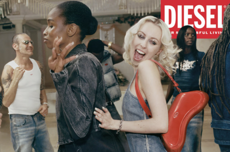 Осенне-зимняя кампания Diesel 2024 года представляет собой трансформацию иронии в визуальный язык поколения Z. Слоган «Til D do us part» (игра с брачной формулой «Пока смерть не разлучит нас») переносит бренд в мир поп-театра: любовь, свадьба, гламур, но с характерной для Diesel самоиронией и брутальной визуальной эстетикой.