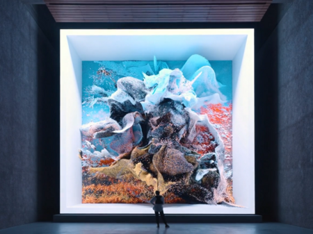 Рефик Анадол, фрагменты из видео «Machine Hallucinations — Nature Dreams / AI Data Sculpture», 2021 г.