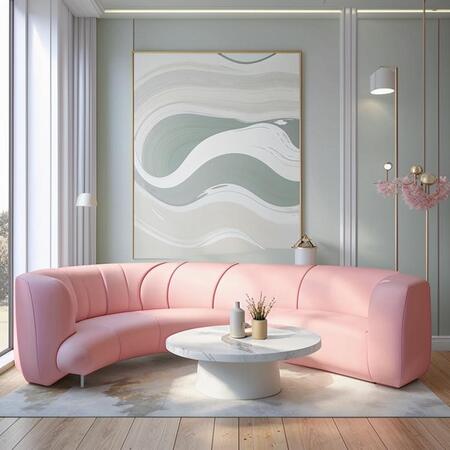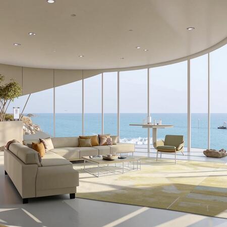 «Interior design photo of a luxurious, minimalist mermaid tail dressing room for a high-fashion modeling agency. The room is a soft blend of an underwater grotto and an elegant boutique. Several intricate mermaid tails are displayed on sleek, white mannequins and illuminated glass shelves. The tails shimmer in the brand’s pastel colors: 419FF9, FDEBCC and F2D8E4. Soft, ethereal glow from pinpoint lighting creates caustic reflections on the floor, resembling sunlight through water. Elegant minimalism, soft pastel color palette, cinematic lighting, hyper-detailed, wide-angle shot.»