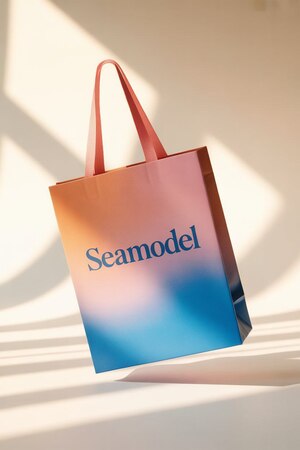 Примеры промтов: „Product photography of a seamodel shopper bag caught in a subtle, dynamic movement. The bag appears as if it was just placed, with one handle still slightly swinging. The design is a soft gradient from 419FF9 (bottom). The „seamodel“ typography is minimalist and centered. Frozen motion, soft pastel colors, elegant minimalism, on a FDEBCC background.»