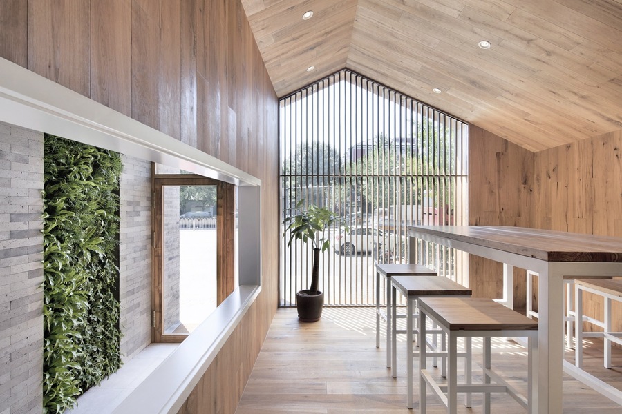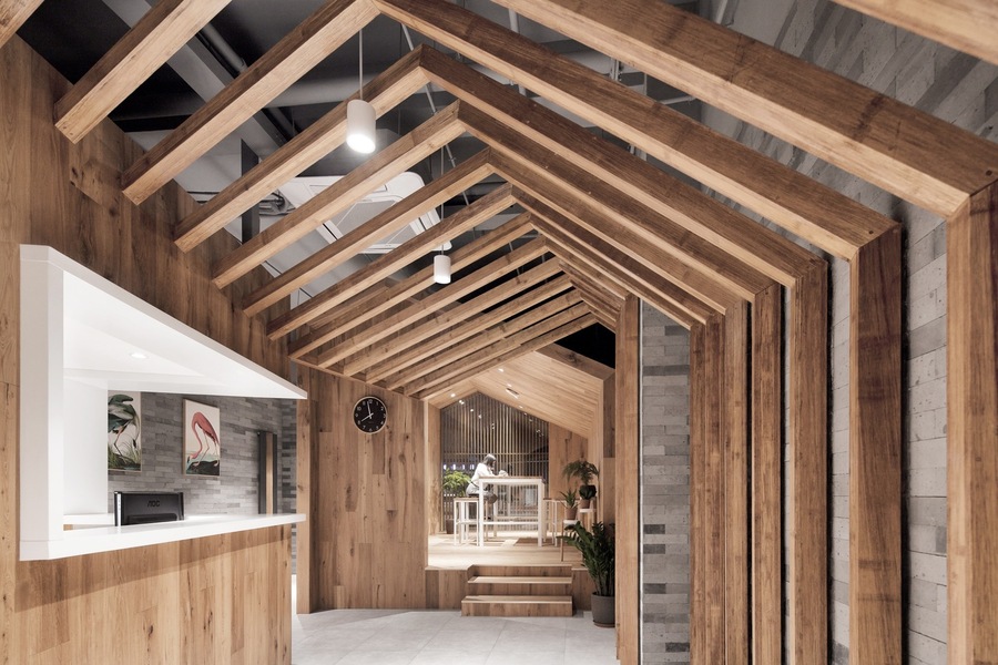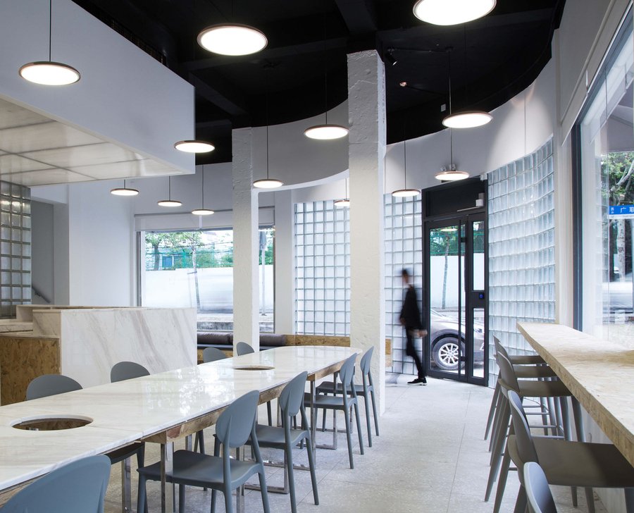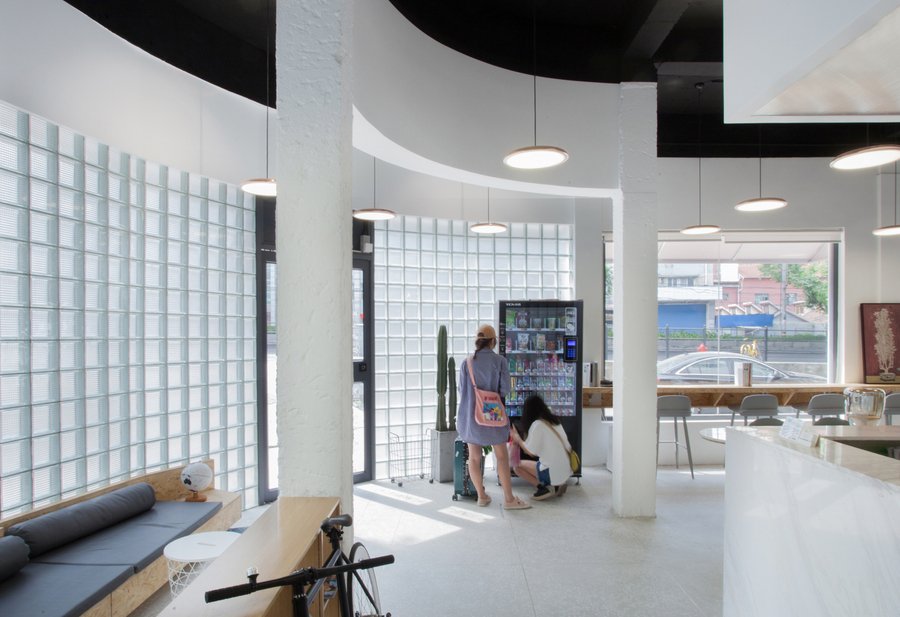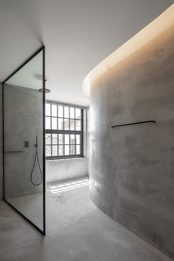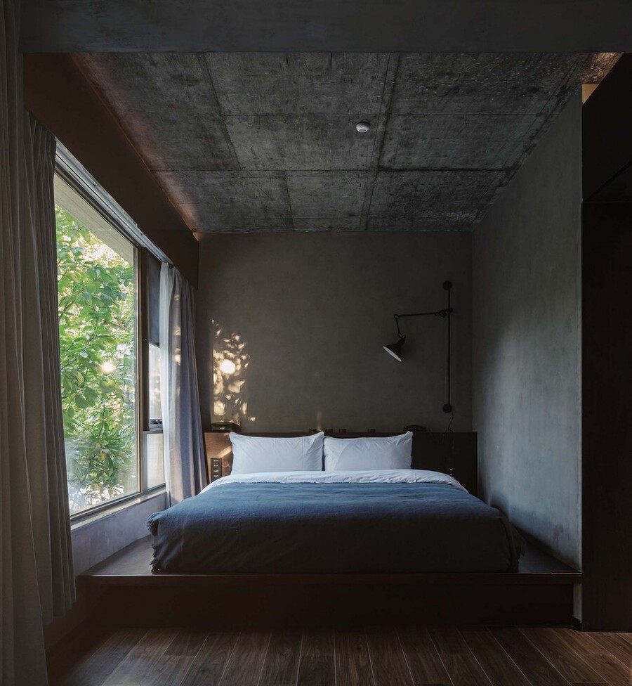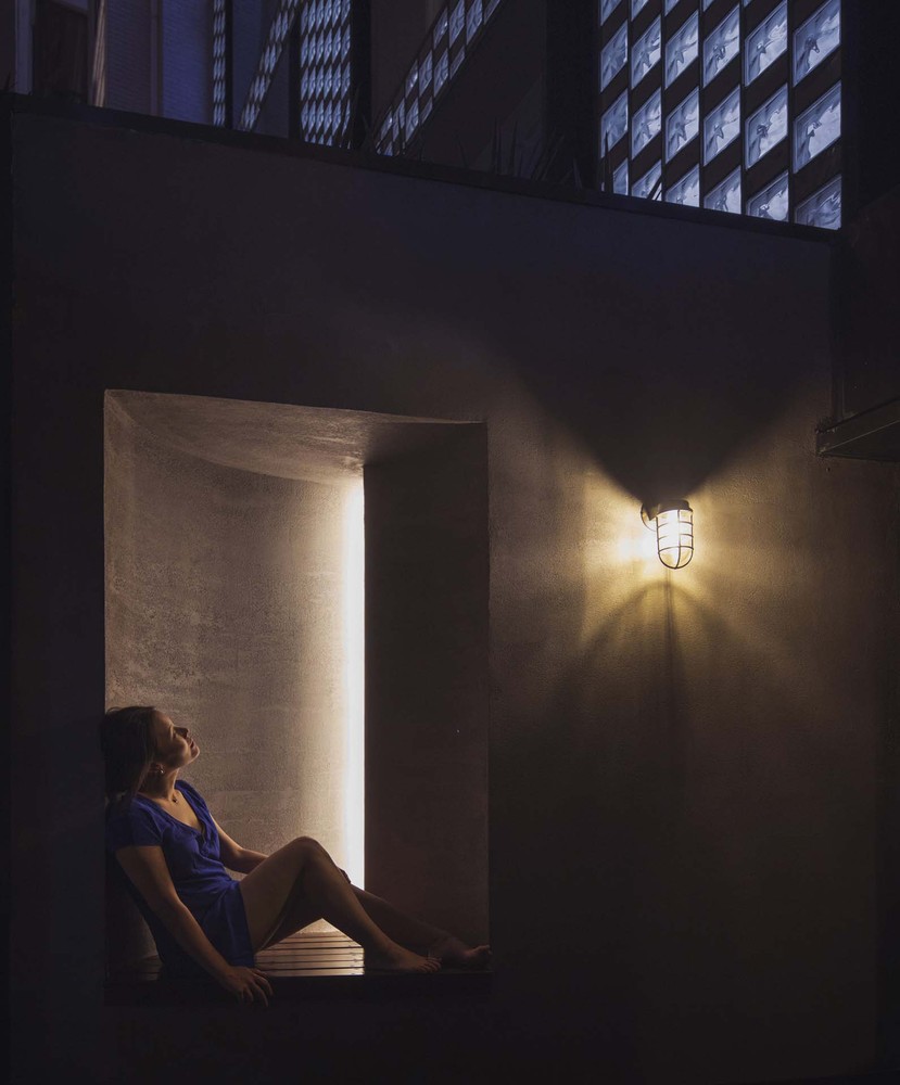 Драма, практичность и строительство. Решение планировки комнат — это игра с существующими трубами и проводами. Чтобы достичь максимальной высоты пола, оригинальный бетон обнажен. Ванные комнаты и трубопроводы кондиционирования воздуха вставлены как встроенные коробки. Самое главное, что во всем здании нет ни одной жалюзи, поскольку все они скрыты в зазорах между материалами.