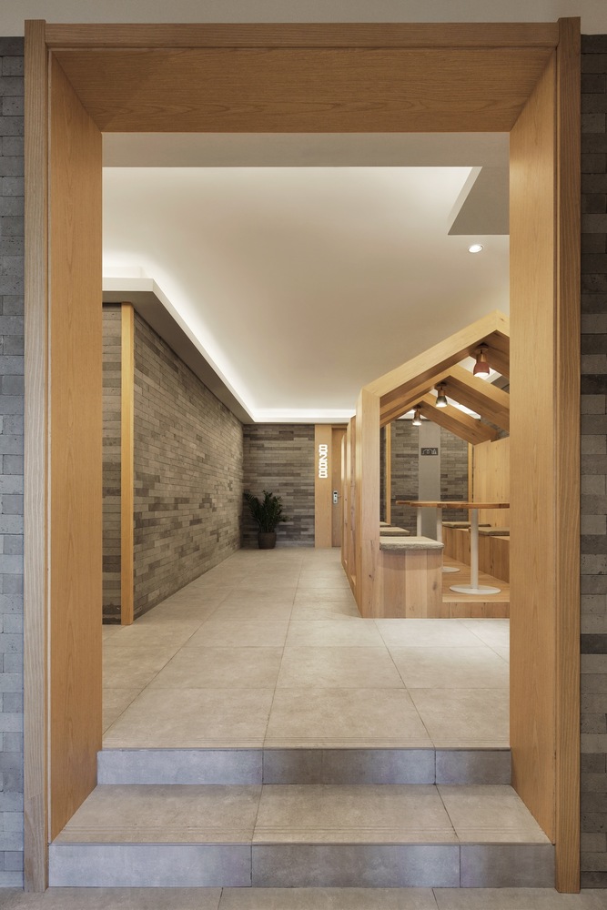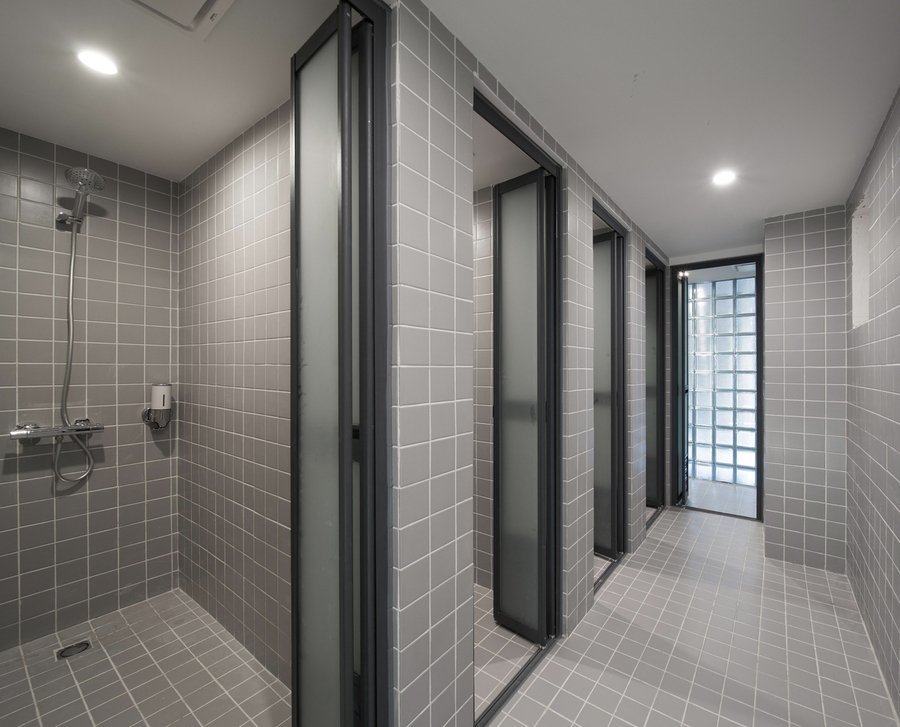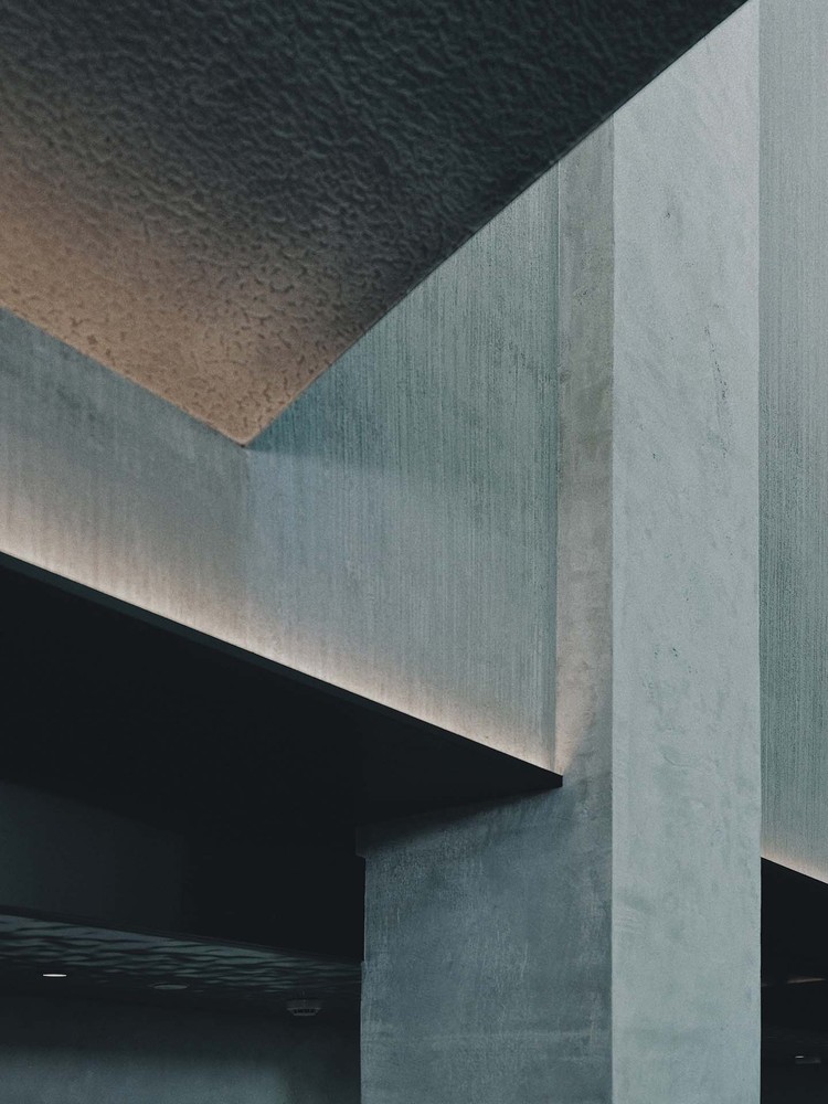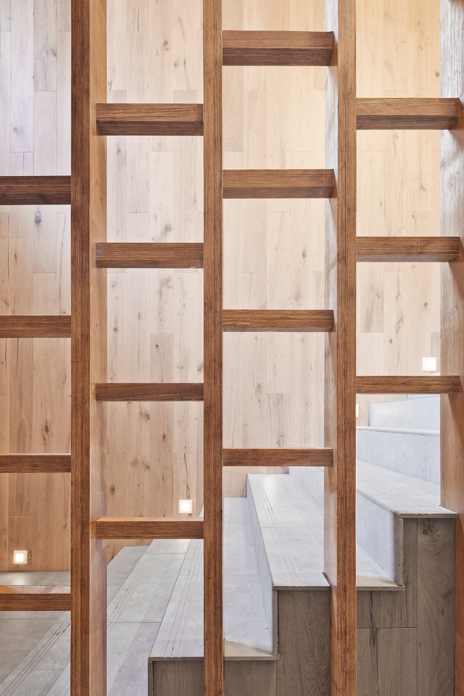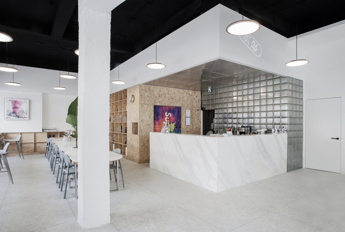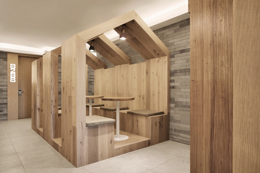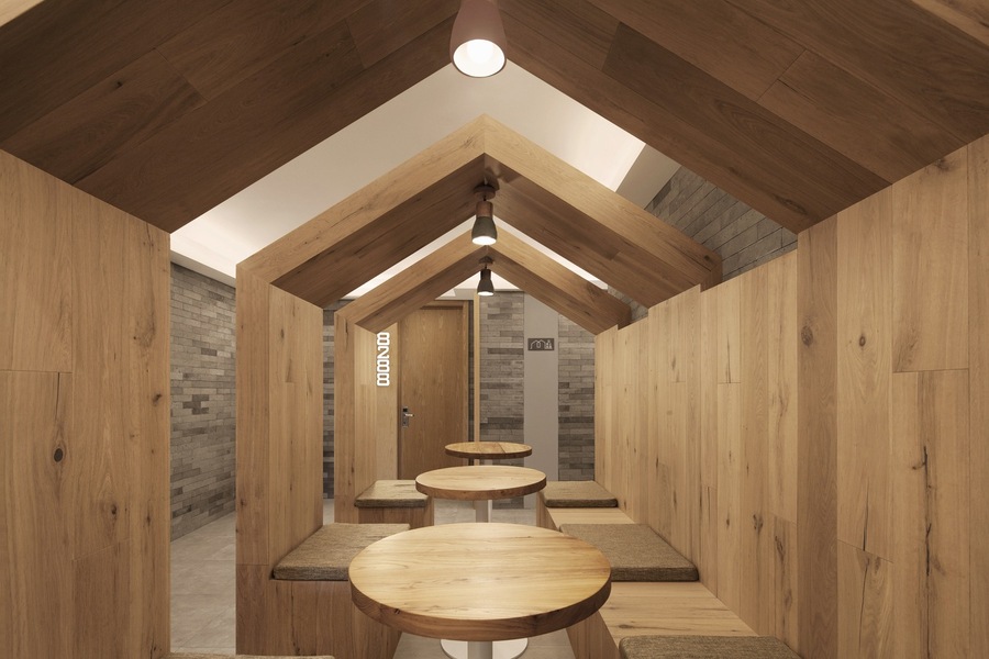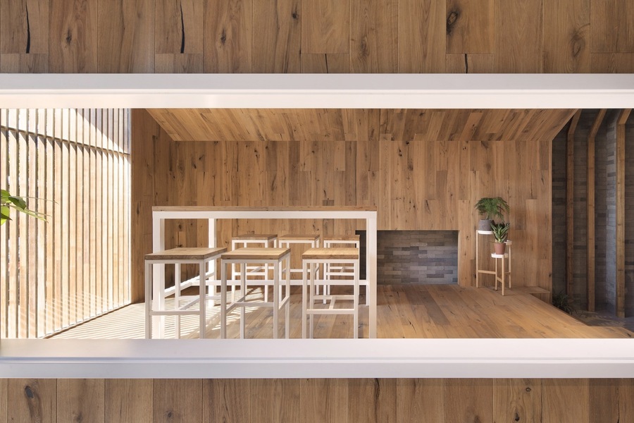 Драма, практичность и строительство. Решение планировки комнат — это игра с существующими трубами и проводами. Чтобы достичь максимальной высоты пола, оригинальный бетон обнажен. Ванные комнаты и трубопроводы кондиционирования воздуха вставлены как встроенные коробки. Самое главное, что во всем здании нет ни одной жалюзи, поскольку все они скрыты в зазорах между материалами.