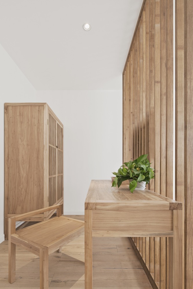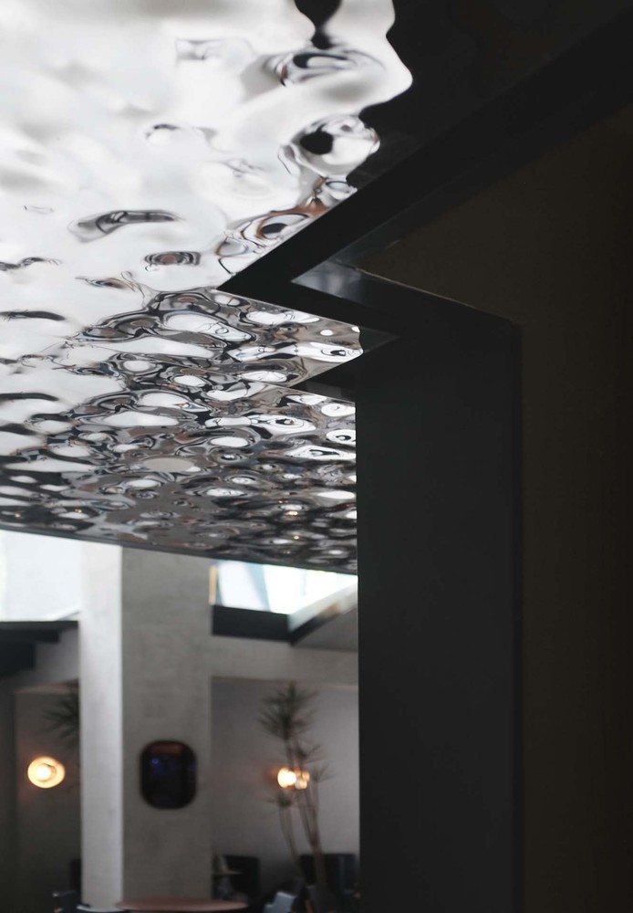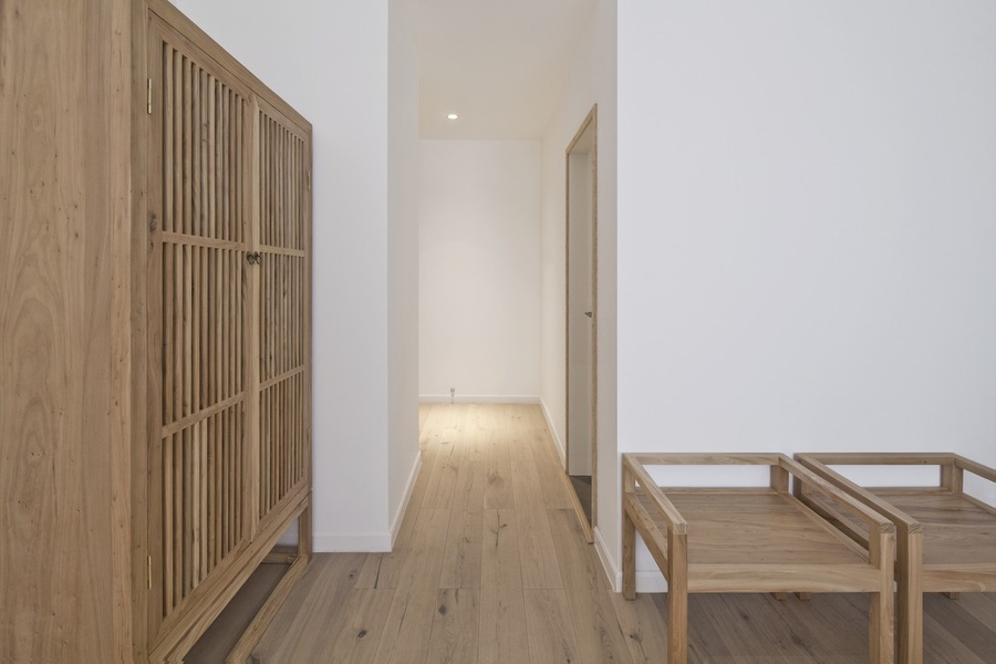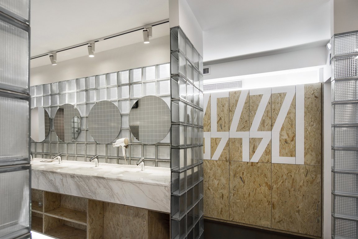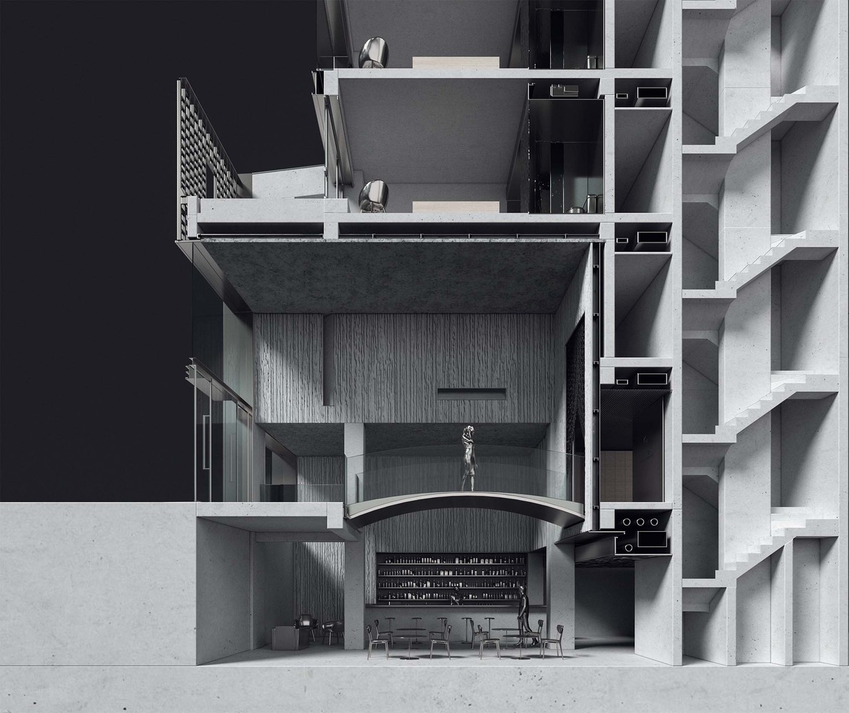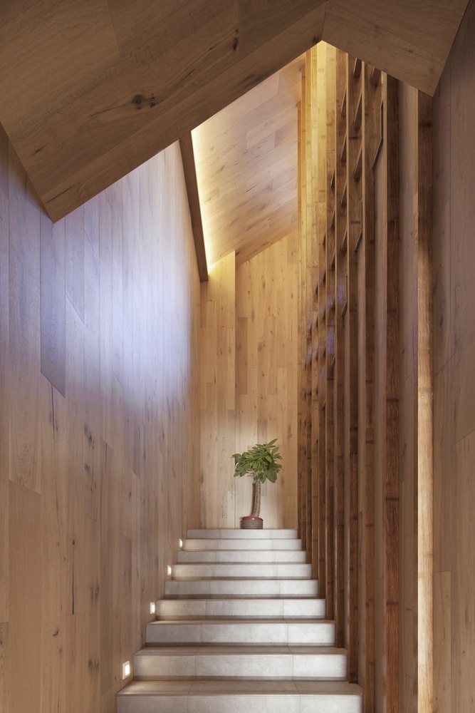 Драма, практичность и строительство. Решение планировки комнат — это игра с существующими трубами и проводами. Чтобы достичь максимальной высоты пола, оригинальный бетон обнажен. Ванные комнаты и трубопроводы кондиционирования воздуха вставлены как встроенные коробки. Самое главное, что во всем здании нет ни одной жалюзи, поскольку все они скрыты в зазорах между материалами.