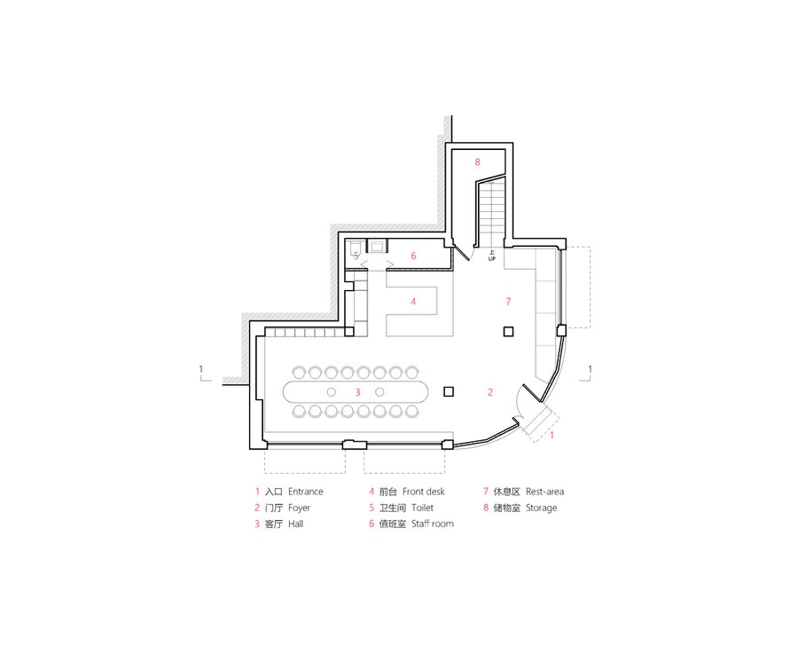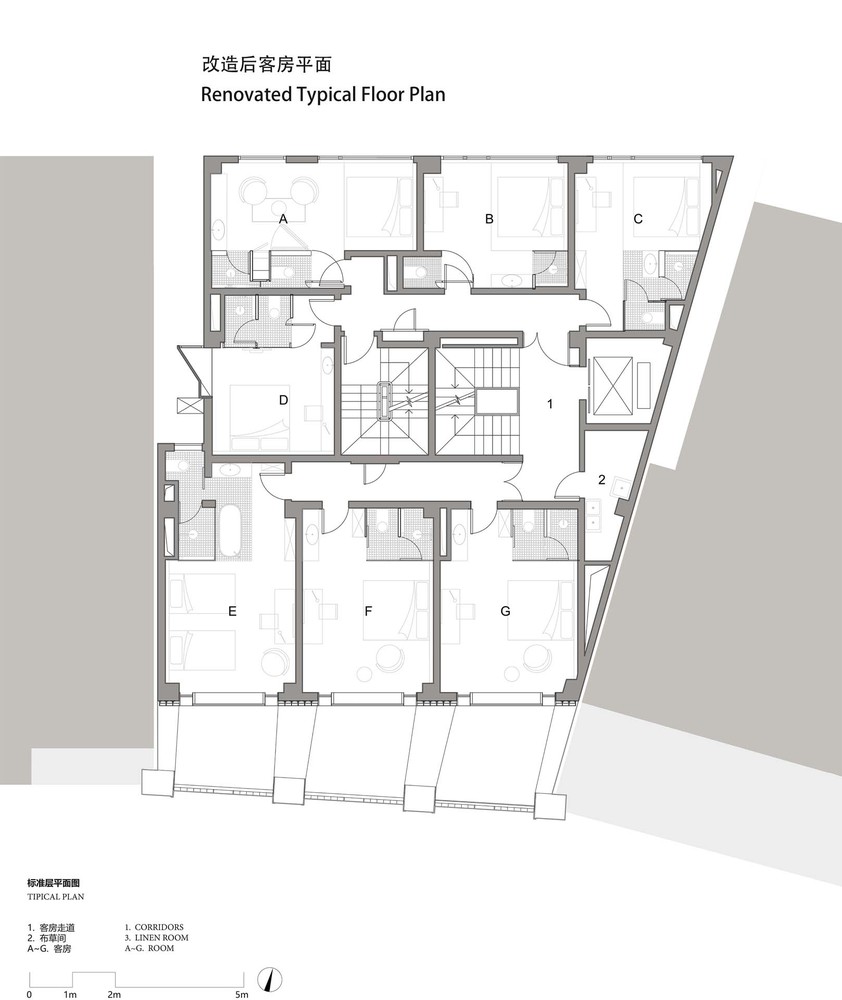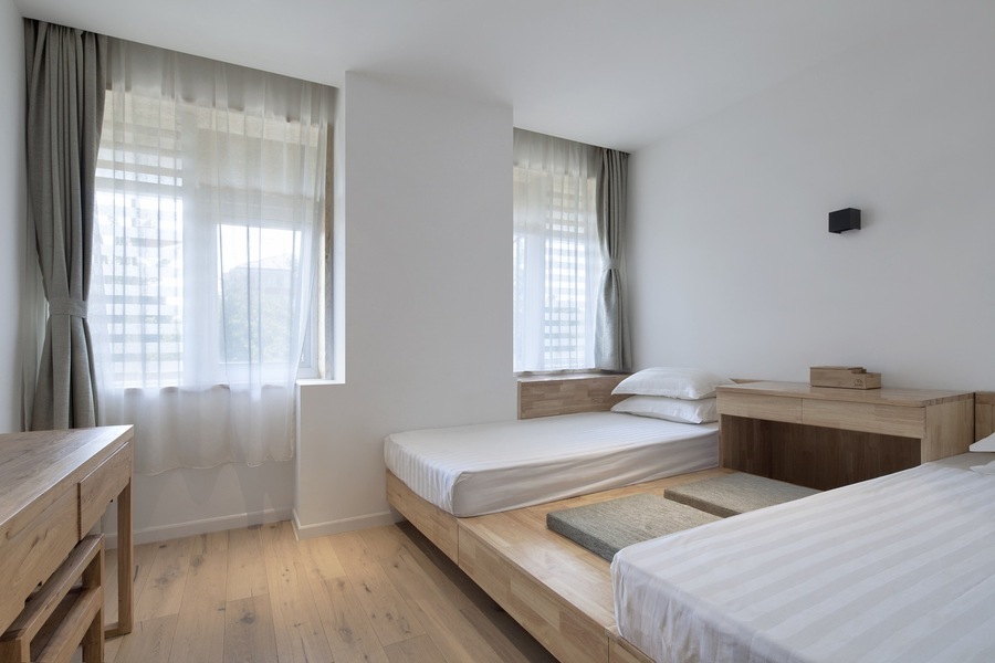 Из-за отсутствия лифта клиент пожелал добавить номер на первом этаже для гостей, которым трудно ходить по лестнице. Находясь недалеко от железнодорожного вокзала Пекина и ключевых больниц, отель был и будет часто посещаем пожилыми туристами и пациентами издалека, ищущими лучшего лечения в столице.