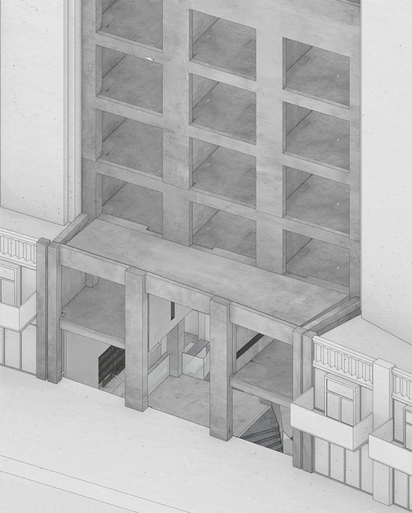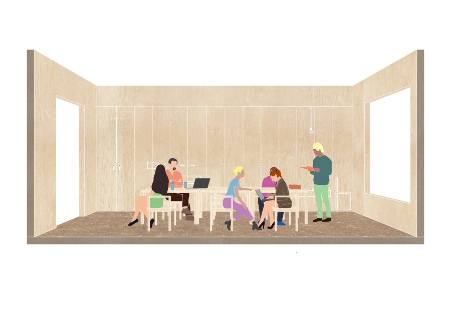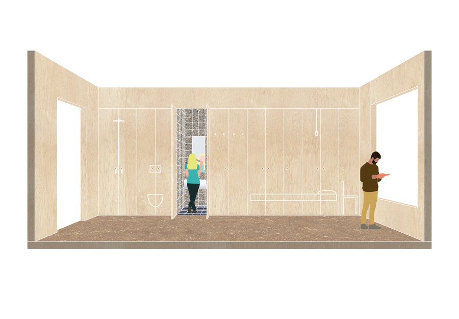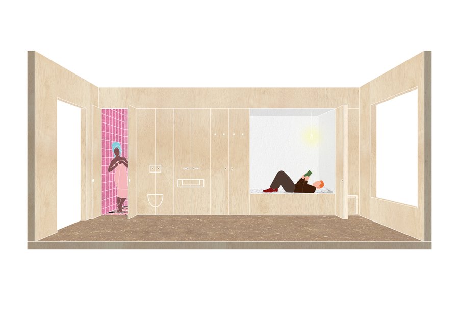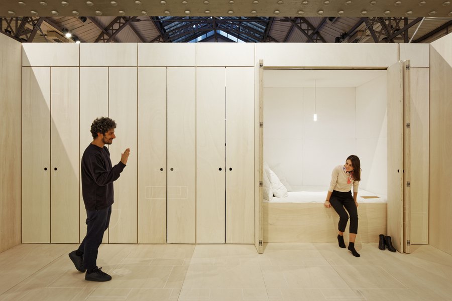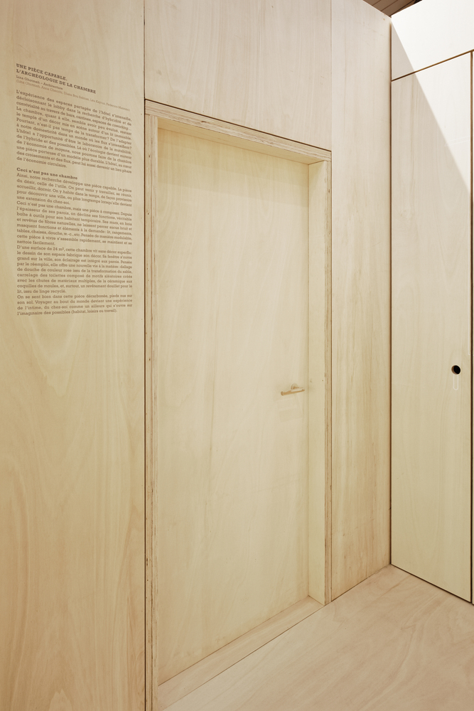 Это привело наше исследование к разработке «способного пространства», которое выражает желание и полезность. Вы можете приходить сюда на работу, встречаться, приветствовать людей или спать. Вы живете в нем со временем, либо временно, чтобы открыть для себя город, либо дольше, когда такое пространство становится продолжением вашего собственного дома. Это не комната, и не пространство, которое нужно собрать. Начиная с толщины его стен, вы определяете его функции; это настоящий ящик с инструментами для его временных обитателей.