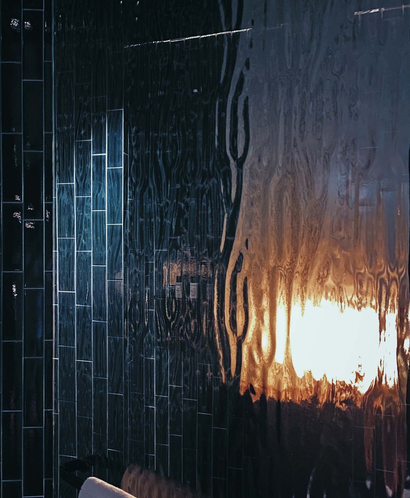 «Водопад» проводится как через экстерьер, так и через интерьер, в котором различные материалы и отделки выражают различные состояния движения: падающая вода, под водой и на берегу. Течение воды также подразумевается в каждой комнате: стены ванных комнат выполнены из лазурной глазурованной плитки ручной работы и стекла с водяными знаками, отражающими мягкое движение реки на стенах.