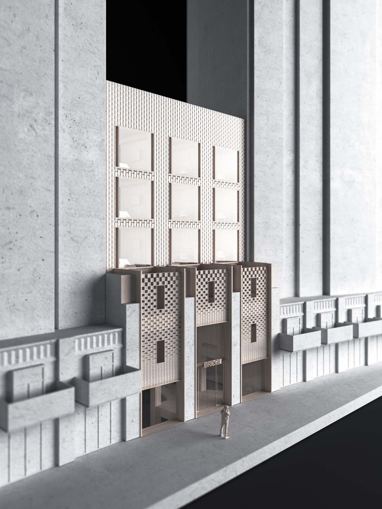 Текстовое описание предоставлено архитекторами. NEOBRIDGE — эксперимент по взаимодействию отеля и города. «Мост» — это тема и решение.
