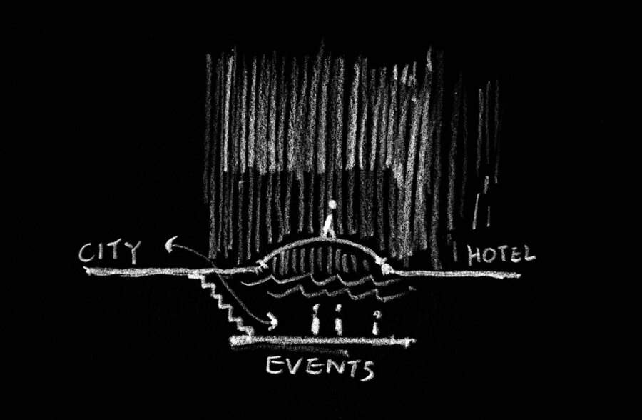 Таким образом, прогулка по мосту становится визуальным центром, ощущением ритуала, а также темой отеля.