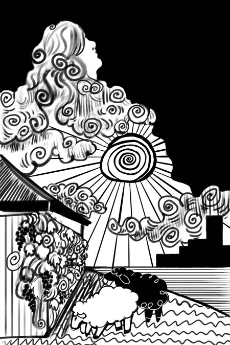 я попыталась применить признак кудрявости ко всей жизни кучерявого человека, таким образом показав некоторые мифы и предметы из повседневной жизни.