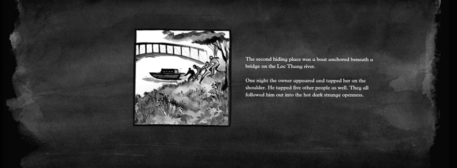 В интерактивном визуальном романе «The Boat» дизайн и навигация стали активными инструментами передачи глубокой травы беженцев. Воссозданные физические ощущения при помощи анимации, звуков, навигации по странице, а также отданное предпочтение элементам традиционной азиатской живописи работаю на то, чтобы погрузить человека в историю.