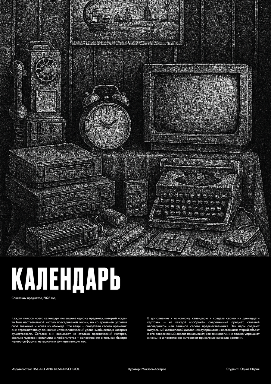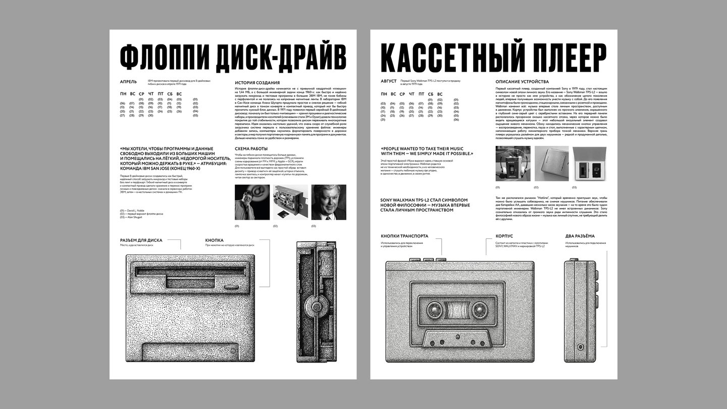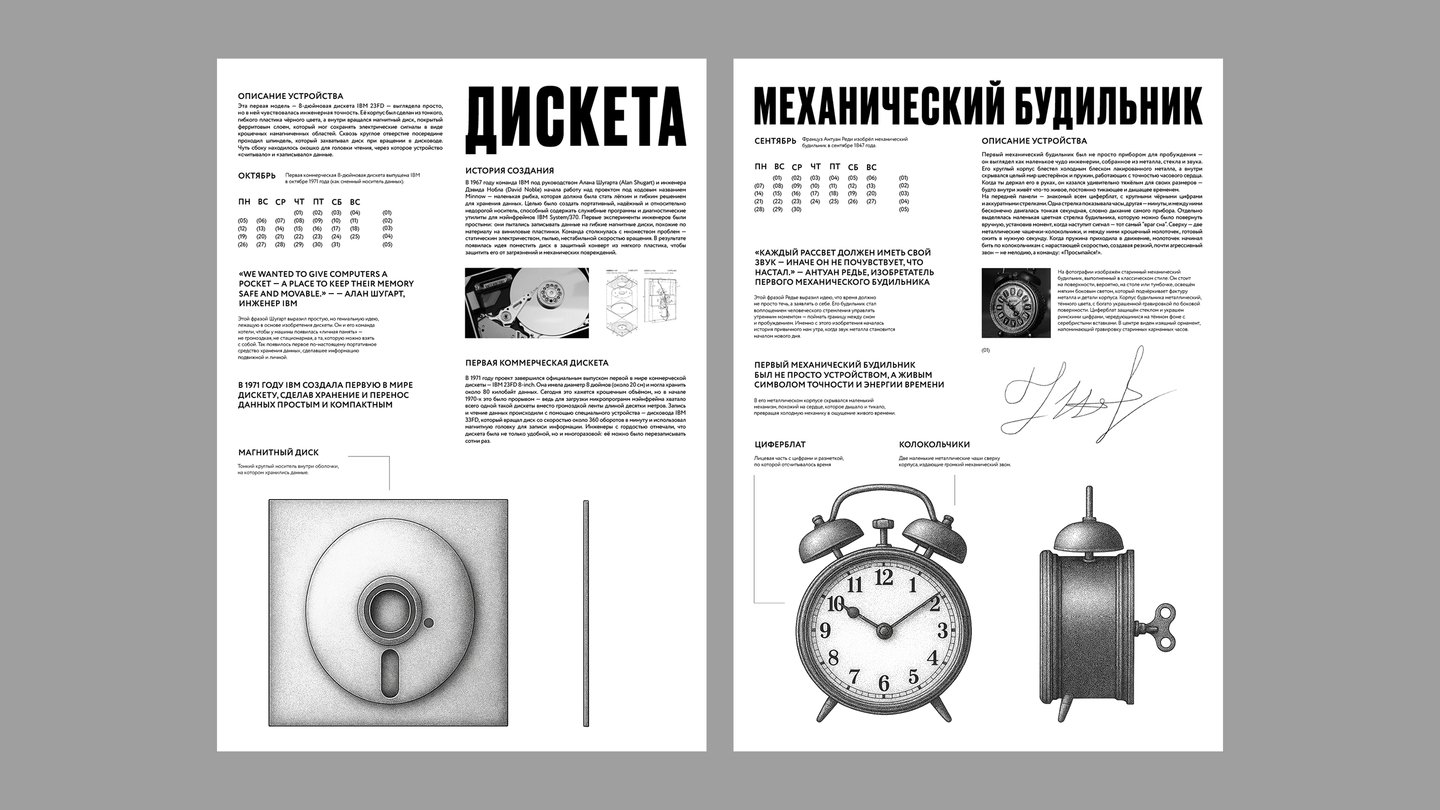 Для финальной концепции я взяла предметы, которые когда-то были популярны, а сейчас они исчезли. Для первых трех полос я взяла пейджер, телефон с монетками и телевизор с лупой КВН-49