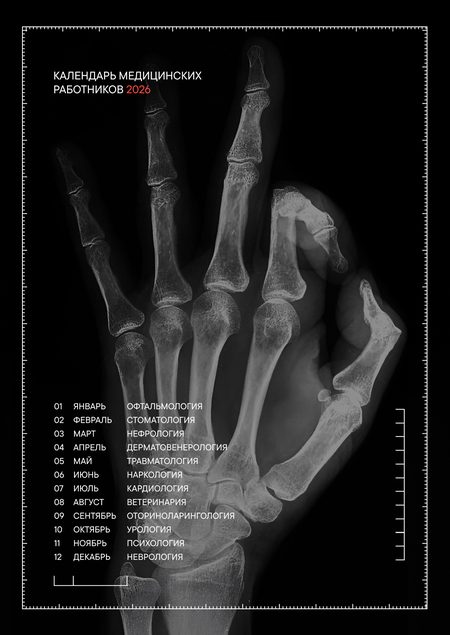 Этот календарь «выводит их на свет». Каждый месяц — «праздничный» рентгеновский снимок, в котором привычные медицинские образы обретают иронию и человечность.