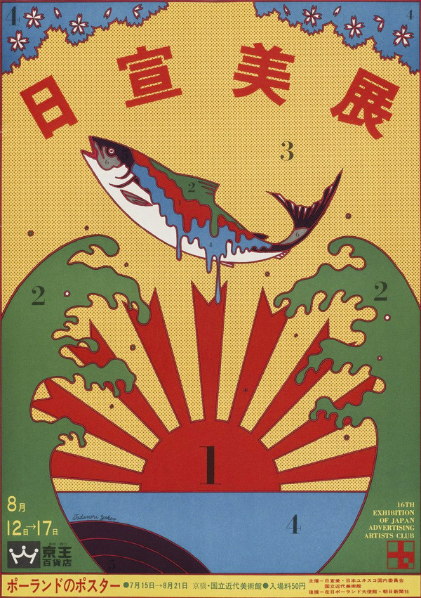 Афиша 1968 года также демонстрирует характерный для Таданори Ёкоо подход к цвету и композиции, но в этот раз в более лаконичной форме.