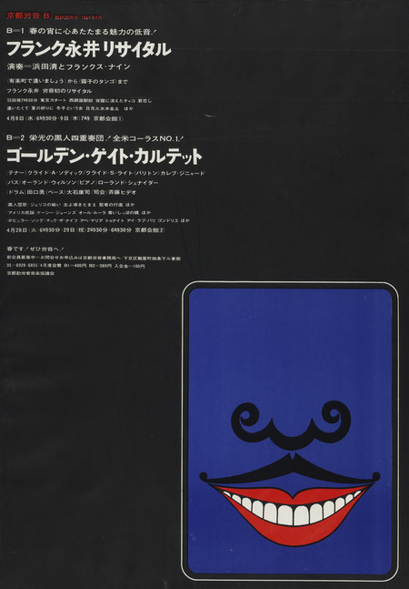 (1) Poetry By Mutsuo Takahashi. Таданори Ёкоо. 1966 г. (2) Плакат для концерта в Киотском фестивальном зале. Smiling mouth with moustache. Таданори Ёкоо. 1964 г.