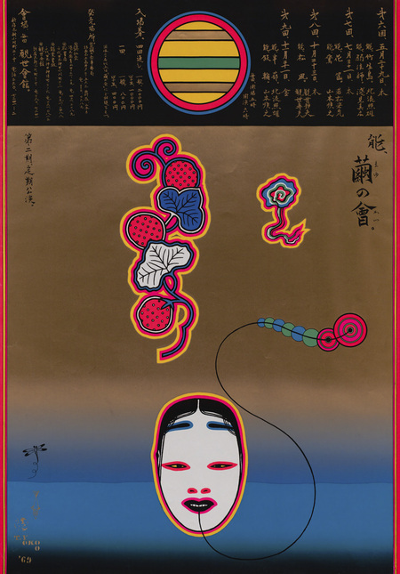 (1) Плакат. Koshimake Osen 2, Fire in a Long-sleeved Kimono. Таданори Ёкоо. 1969 г. (2) Плакат для Noh Play. Таданори Ёкоо. 1969 г.