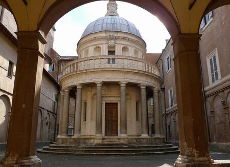 Ротонда Темпьетто Браманте — очень интересное здание, окружённое 16-ю тосканскими колоннами, в основу которых лёг дорический греческий ордер. Как говорилось выше, это его упрощённый вид: исчезают углубления в стволе (каннелюры) и появляется база колонны, имеющееся также у ионического и коринфского ордеров.
