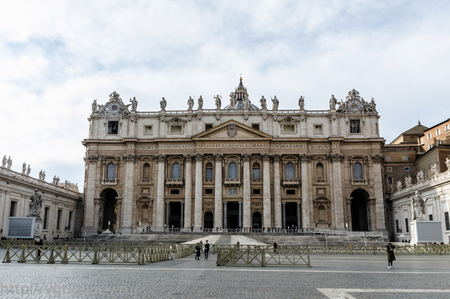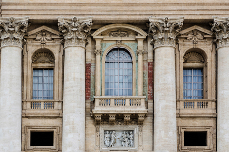 Главный фасад Собора Святого Петра богато украшен скульптурами, рельефами и арочными окнами с ажурными балконами, а также дополнен 8-ю колоннами, которые соответствуют структуре коринфского греческого ордера (за исключением отсутствия каннелюр на стволах). Особое изящество свето-теневого рисунка фасада архитектору удаётся добиться за счёт глубины, возникающей за колоннами, а также общего рельефа и вычурности деталей.
