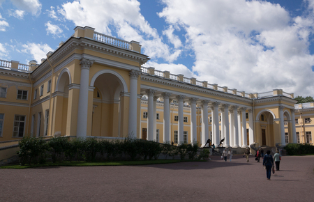 Фасад Александровского дворца отличается строгость пропорций, лаконичностью и уравновешенностью. Ясность и простота данных архитектурных решений данного здания олицетворяет собой каноны эпохи классицизма. 20 колонн с коринфскими капителями и отсутствием каннелюр создают эффектную колоннаду. Общая композиция здания имеет горизонтальную ориентированность.