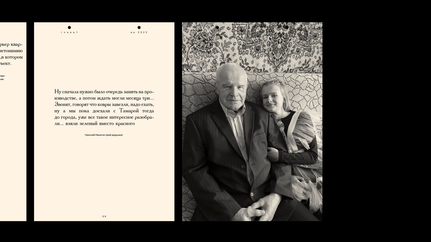 In the interior of a Soviet man, the carpet was hanging on the wall, covering it completely and purifying the space of the apartment, so photographs and printing in my book also fill out all the space of the sheet, changing their size and shape.