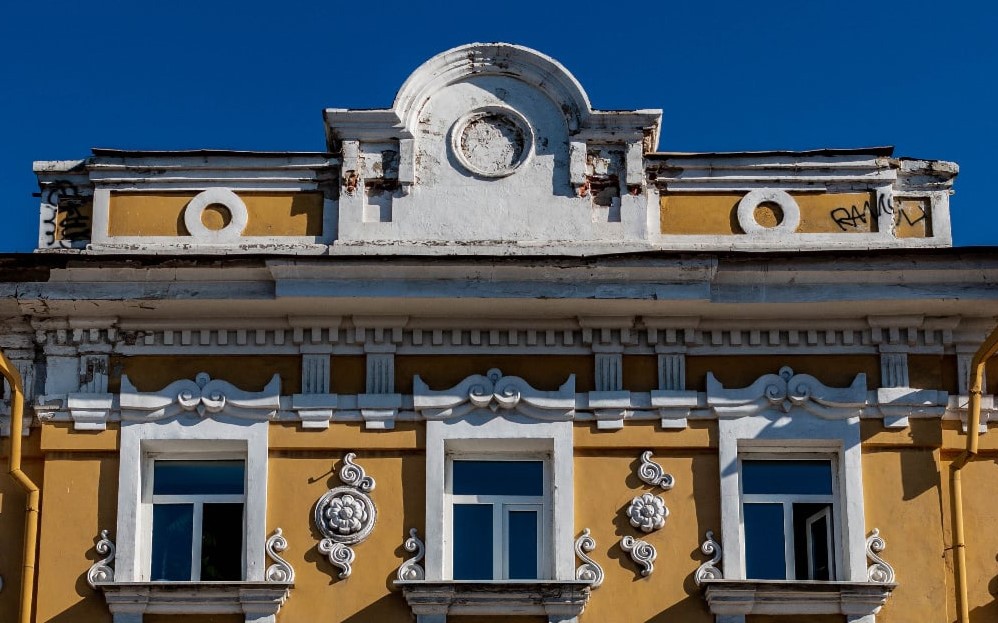 Бурятские орнаменты на фасаде усадьбы Пахолкова-Кравца в Иркутске. Фото: Василий Татарников.
