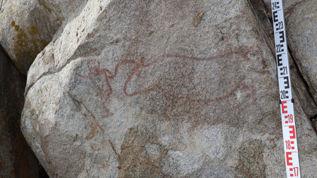 Наскальное изображение быка, найденное на реке Кан в Красноярском крае.