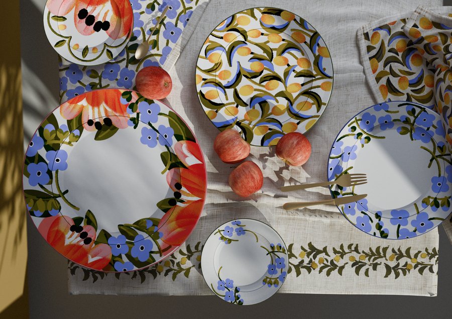 «Летний» — это коллекция текстиля и посуды, вдохновленная сезонными цветочными композициями.