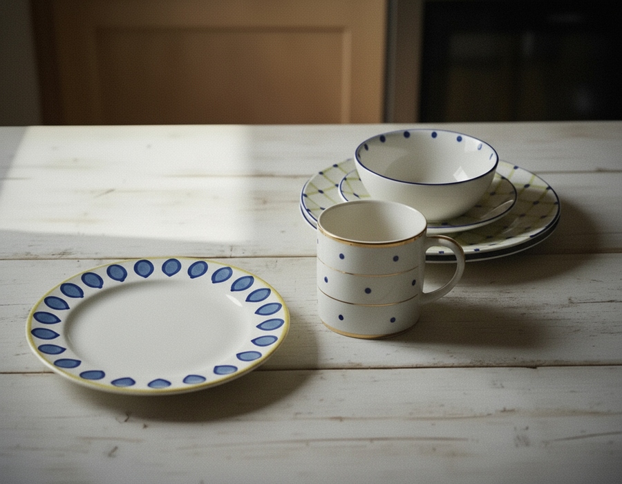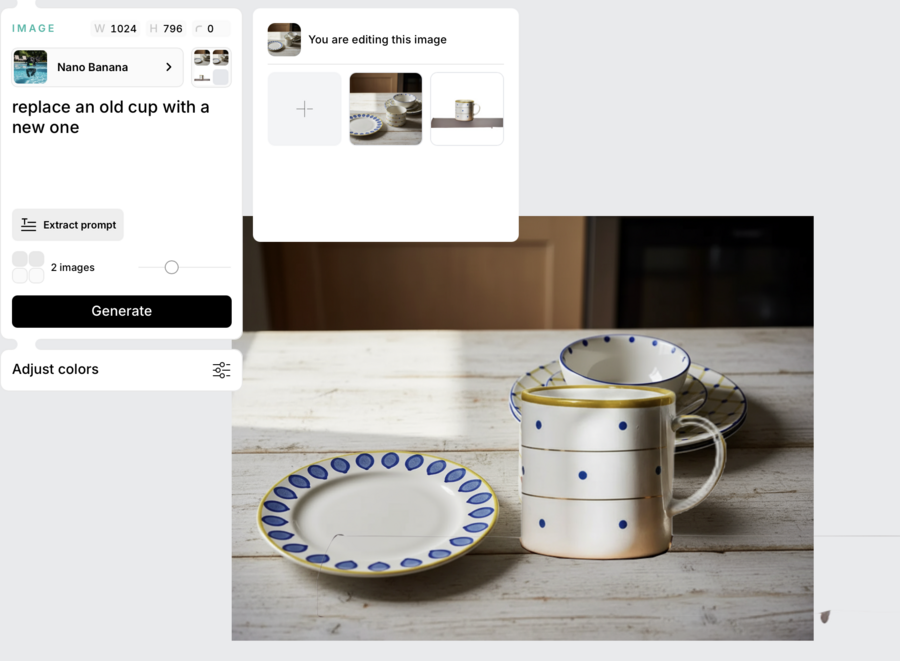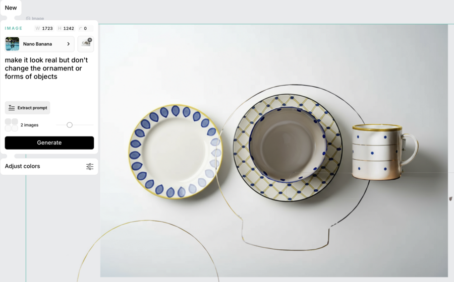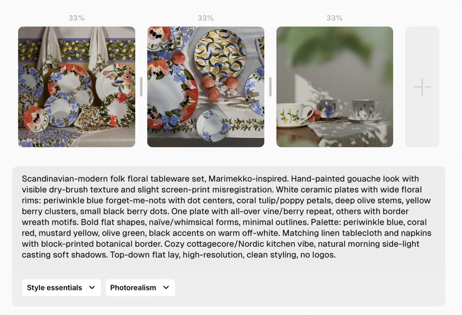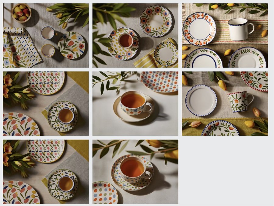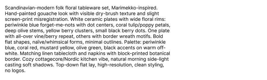 Сперва я использовала простые промпты по типу «plates on a table» и искала симпатичные вариации.