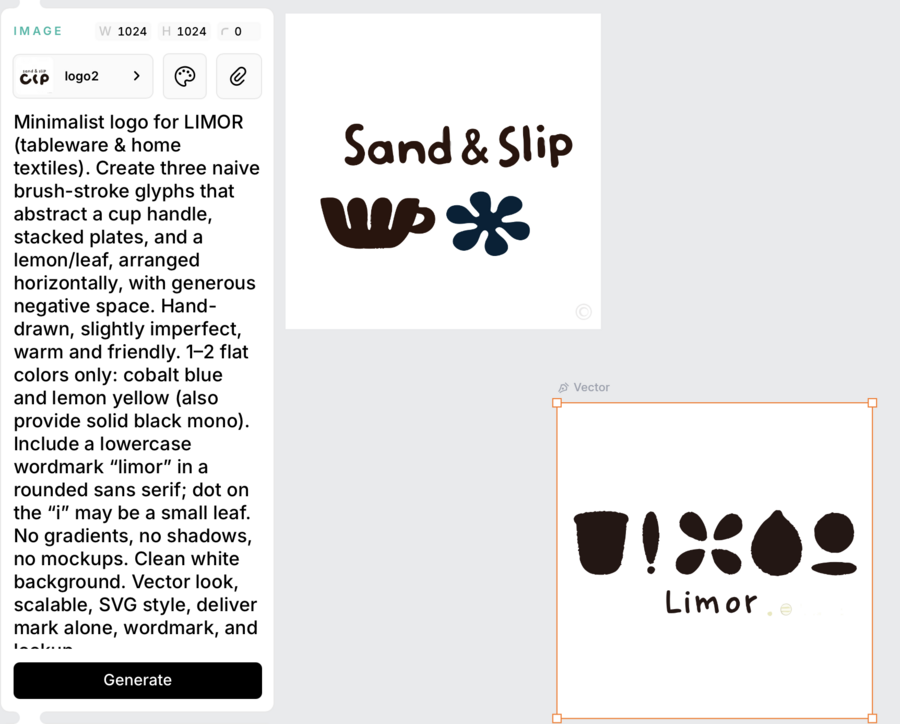Я попросила chat gpt проанализировать продукцию старой и новой коллекций, и подобрать название, которое бы соответствовало атмосфере бренда. Для создания логотипа я создала новый стиль на основе примеров, которые мне понравились и показались подходящими для проекта. Chat gpt уже с информацией о бренде и с теми же референсами написал для меня промпт стиля для логотипа и подобрал фирменный шрифт. Я выбрала несколько вариантов и совместила иконку и леттеринг в иллюстраторе. С помощью Adobe color подобрала фирменные цвета — они не должны были быть слишком яркими, поскольку сама продукция довольно пестрая.