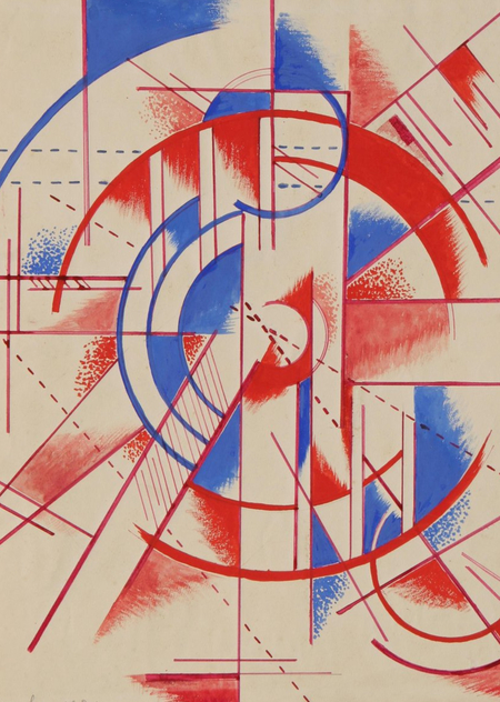 Переход Поповой к конструктивизму связан с теми изменениями, которые происходят в художественной среде после революции 1917 года, но начинается он не сразу с производственных задач. Первым шагом становится её работа над «пространственно-силовыми конструкциями», где супрематические плоскости превращаются в более организованные, почти инженерные структуры. Попова начинает рассматривать форму не как автономный живописный элемент, а как носитель определённого напряжения, направленности и функции. В этих композициях исчезает декоративность, а плоскости ведут себя как части реальной конструкции, подчинённой внутренним законам равновесия и действия сил. Именно здесь формируется та логика, которая станет основой её дальнейшего конструктивистского подхода.