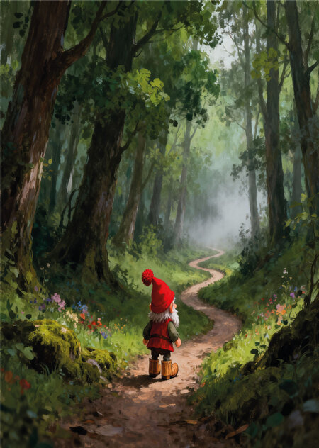 Обложка — Сгенерируй гномика в лесу, который уходит вдаль по тропинке