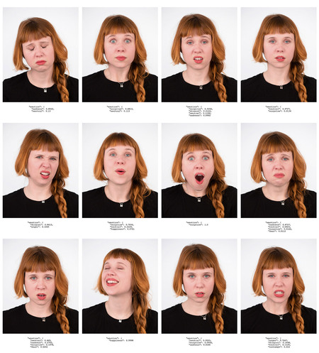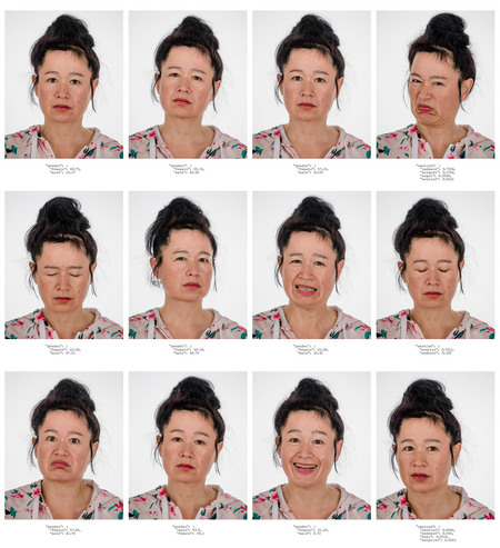 Эти две работы представляют собой сборку из сотен портретов художницы Хито Штейерль и звуковой художницы-композиторки Холли Эрндон, пропущенных через разнообразные алгоритмы анализа лица. Под каждым изображением представлены вычисленные системой параметры — предполагаемый возраст, гендер, эмоциональное состояние, а также такие признаки, как наличие улыбки или растительности на лице. Работы демонстрируют, как машина классифицирует человеческий облик. Машинное видение здесь не отражает субъективное восприятие человека, а конструирует цифровую модель идентичности, где каждый портрет становится входными данными для вычислений и категоризаций. По сути, она сводит богатую визуальную информацию до ограниченного набора параметров.