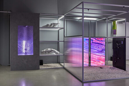 Инсталляция Грегори Шатонский «Terre Seconde» говорит о том, как искусственный интеллект создает собственное видение мира, построенное на миллионах человеческих изображений, но уже не принадлежащее человеку. Шатонский показывает, как машина, накопив интернет-данные, получает способ автоматически производить огромное количество реалистичных изображений, формируя «другую Землю», которая имеет гибридный, мутационный ландшафт.