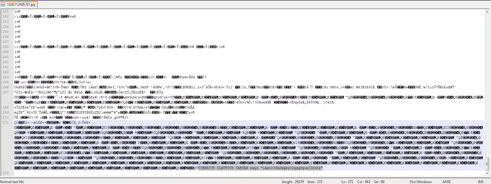 Изображение содержало две подсказки, одна из которых содержала в себе шифр Цезаря и была ложной (изображение с уткой). Это был первый фильтр, отсеивающий невнимательных участников.