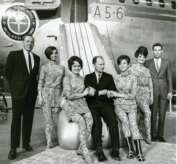 В 1965 году руководитель рекламного агентства Мэри Уэллс Лоуренс представила революционный новый имидж авиакомпании Braniff, который произвёл настоящий переворот в авиационной индустрии. В рамках кампании «Конец простого самолёта» дизайнер Александр Жирар создал яркую цветовую палитру, а итальянский модельер Эмилио Пуччи полностью обновил форму бортпроводниц. Его коллекция Pucci Gemini IV 1965 года включала многослойные элементы — костюмы, туники и кюлоты, которые можно было быстро менять прямо во время полёта. Год спустя Пуччи представил форму Supersonic Derby (1966): костюм из нейлонового джерси с арлекинским принтом, колготками и котелком, украшенными мотивами доколумбового искусства Центральной Америки. Дополняли образ полосатые ботинки из телячьей кожи, созданные дизайнером обуви Бет Левин.