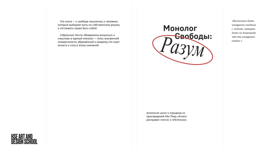 Идея в передаче сути философии объективизма через монологи главных героев циклов книг «Источник» и «Атлант Расправил Плечи» автора Айд Рэнд. Сборник с важными цитатами, ключевыми монологами и диалогами.