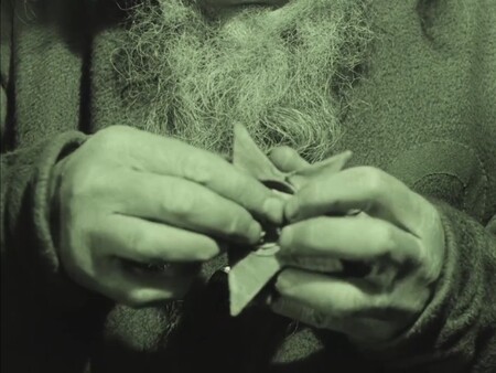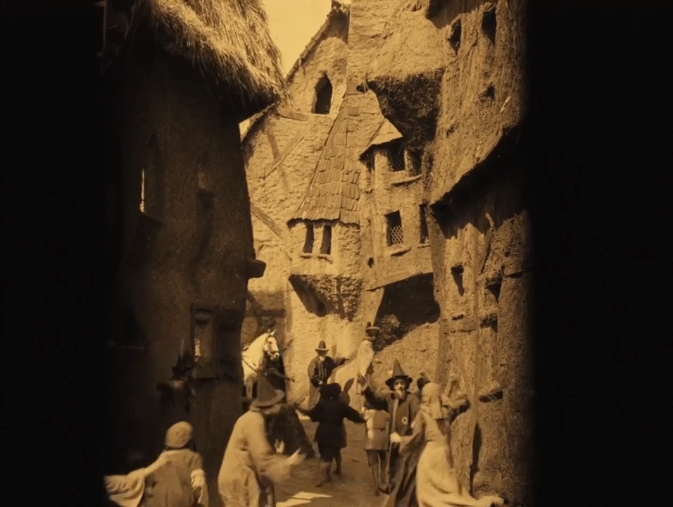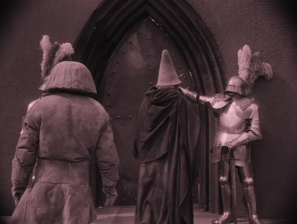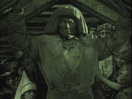 После окаменения голема рамка внутри кадра исчезает, словно он покинул «тюрьму» жизни. Видеофрагмент из фильма «Голем, как он пришел в мир» (реж. Карл Безе, реж. Пауль Вегенер, 1920 г.)